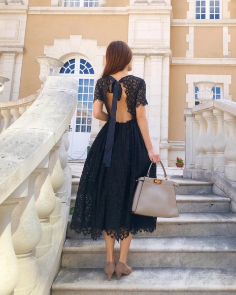 セミフォーマルは結婚式の参列のようなあらたまった場面で着用します。昼間はアフターヌーンドレスといって膝下丈のデザインのドレスが主流です。ノースリーブや露出が多いドレスの場合はボレロやストールを羽織ります。夜はカクテルドレスを着用するのが一般的です。男性はタキシードやブラックスーツなどを着用します。画像の@shizuka.watanabeさんのドレスはレースとリボンが上品に使用されていて膝下丈スカートのふんわりとしたシルエットがとても華やか。人目を惹くデザインですが主張しすぎないカラーで上品に着こなしていますね。