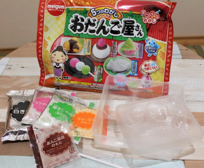 きなこもちやいちご大福、たい焼きなど5種類の和菓子が作れちゃいます。自分の手で混ぜたり型取ったり、飾ったりできるので、自分の好きなように楽しく作れそうですね。