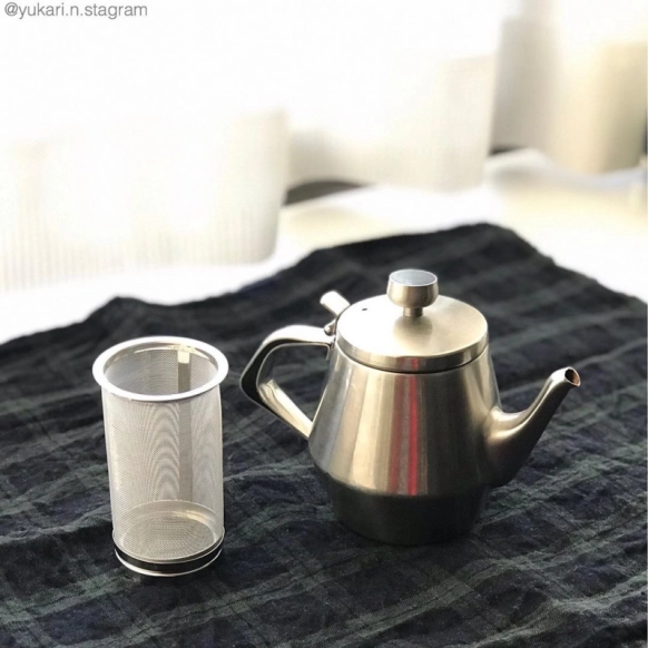 『KOINU(仔犬印)』は業務用の厨房製品をメインに作っている本間製作所のブランド。その耐久性と機能性、そしてかわいいデザインで家庭用としても人気のステンレス製のティーポットは、熟練の職人さんによる手作りが魅力。注ぎ口の湯切れも良く使いやすいサイズです。@yukari.n.stagramさんは、別売りのティーポットにピッタリサイズのティーストレーナーもいっしょに使用されているそうです。