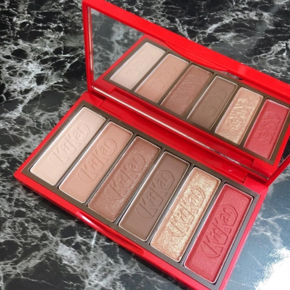 過去にはキットカットとのコラボアイシャドウが販売されました。ぱっと見ただけではアイシャドウと気づかない、キットカットをリアルに再現したパッケージデザインです。