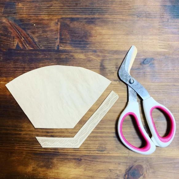 コ―ヒーフィルターのくっついている部分を切り落とします。