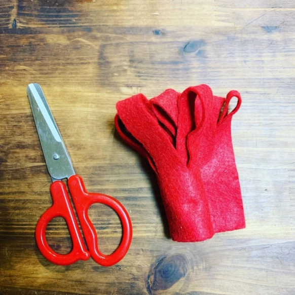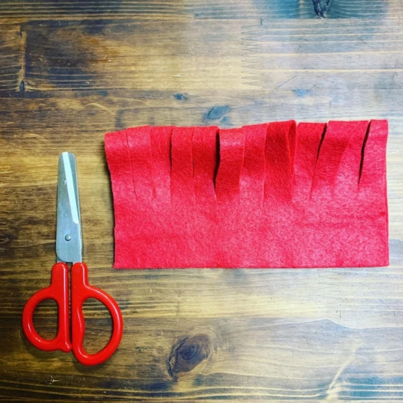 作り方は、フェルトを適当な大きさに切り、折りたたんだ部分に切り込みを入れるだけ。