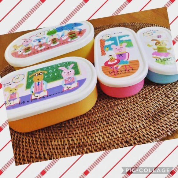 @march.jpさんはイラストレーター水森亜土さんのお弁当箱をチョイス!ギンガムチェックがおしゃれです。シールタイプのお弁当箱で、入園前にしっかりと開け閉めの練習をしたそうです。おなじみのシールタイプでは『Skater(スケーター)』の「シール容器弁当箱 3Pセット ミッフィー」もおすすめ。