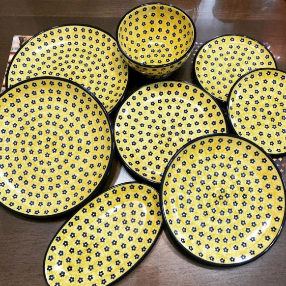 『CERAMIKA ARTYSTYCZNA(セラミカ・アルティスティッチナ)』社は、ボレスワヴィエツを代表する老舗メーカーのひとつです。セラミカの製品は伝統的な絵柄はもちろん、モダンな絵柄のものも多く、多彩なデザインがそろっていることで知られます。黄色をベースに藍色のかわいい小花を描いた “サフラン”など、人気柄もいろいろ☆