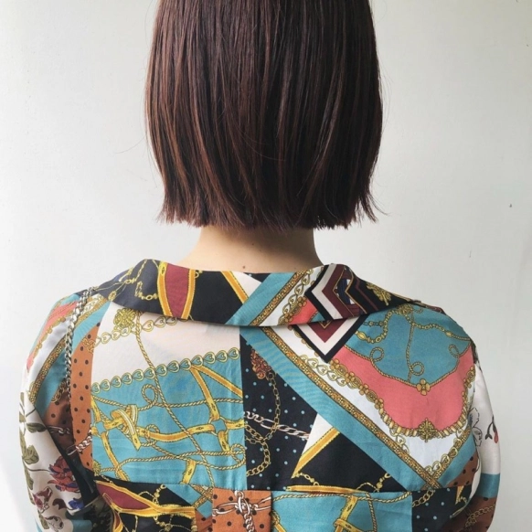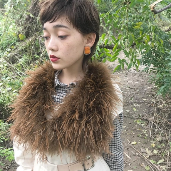 切りっぱなしのボブもそのナチュラルさがボーイッシュなイメージにつながりますね。髪を無造作にしているぶん、思い切りモードな洋服とベストマッチです。