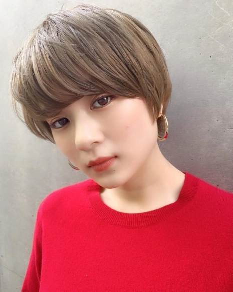 全体的に丸っこいフォルムのマッシュヘアも人気です。明るめのカラーが重めのフォルムと好バランス。あえてリップのみにポイントを置いた引き算メイクで目元のクールな印象が際立ちますね。
