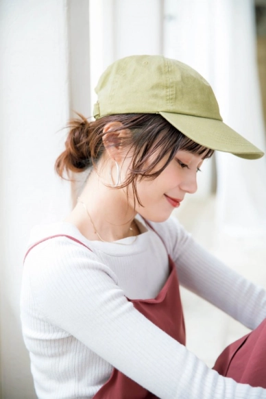 キャップはかぶればすぐにボーイッシュになるお助けアイテム。