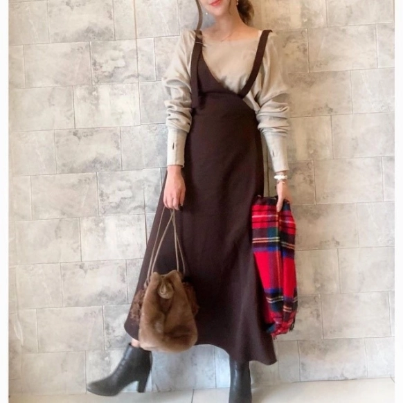 GUの「スクエアトゥヒールブーツ」2,990円(税抜)にブラウンのジャンパースカートを合わせた秋冬らしい配色のコーデを紹介してくれた@ rococo39さん。赤チェックのストールがさし色になっていて、とってもおしゃれです。秋冬コーデに欠かせないショートブーツもGUならリーズナブルに手に入りますよ。