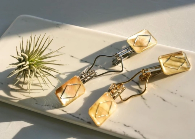アクセサリー卸会社の『PADOVA(パドヴァ)』は、国内生産されたオリジナル商品を数多く取り扱っています。「2WAYスクエアストールクリップ」2,420円(税込)も、日本製オリジナル商品のひとつ。両サイドのクリップ部分が中央のパーツから外せるようになっており、単品クリップとしても使用できる機能的なアイテムです。普段使いはもちろん、結婚式やパーティーといったフォーマルシーンにもおすすめ。