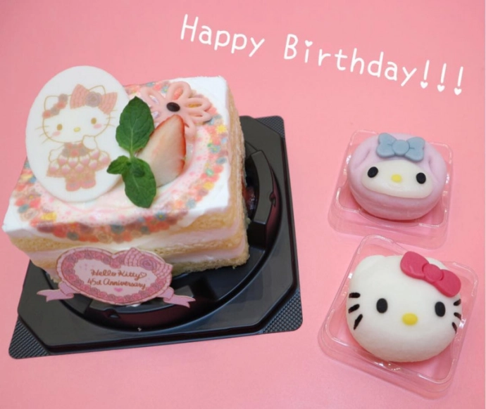 ファンシーな色づかいがキュートな、ハローキティーのアニバーサリーケーキ。見ているだけでうれしくなりそうですね♡