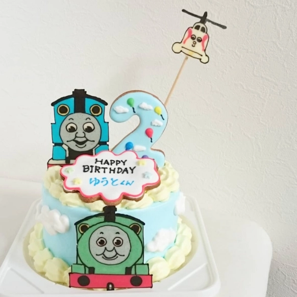 トーマスをオンするのではなく、スポンジケーキそのものをトーマスにするオーダーも人気のよう。カラフルな色使いはインパクトがあり、喜ぶこと間違いなしですね。