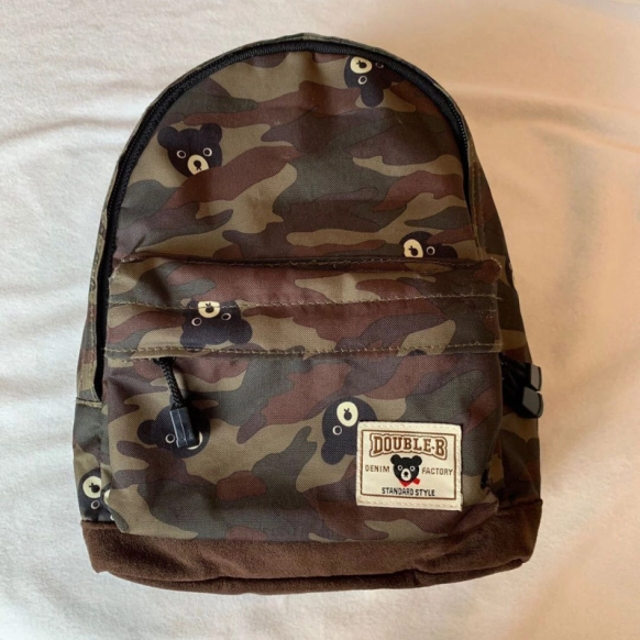 ミキハウス『DOUBLE.B(ダブルB)』の「ミリタリーリュック」は、迷彩柄とブラックベアのお顔がコラボしたデザイン。渋いカラーがとてもかっこ良く、特に男の子に人気のようです。