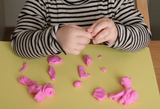 手先を使って自由に創作できるねんどもおすすめです。カラフルなねんどなら、食べ物や乗り物などをモチーフにしてねんど遊びができるかもしれません。子どもが自分の好きものを作れるように見守りたいですね。