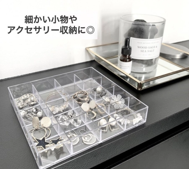 自宅用のピアス収納にも、百均は大活躍♡@michu4michuさんが使っているのは、ダイソーの16分割されたクリアケースです。たくさん収納したい場合は、複数購入して積み重ねることもできます。