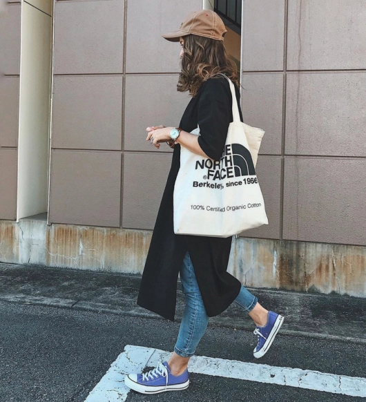 インスタグラマーさんのノースフェイスのトートバッグを使ったコーデをみていきましょう!