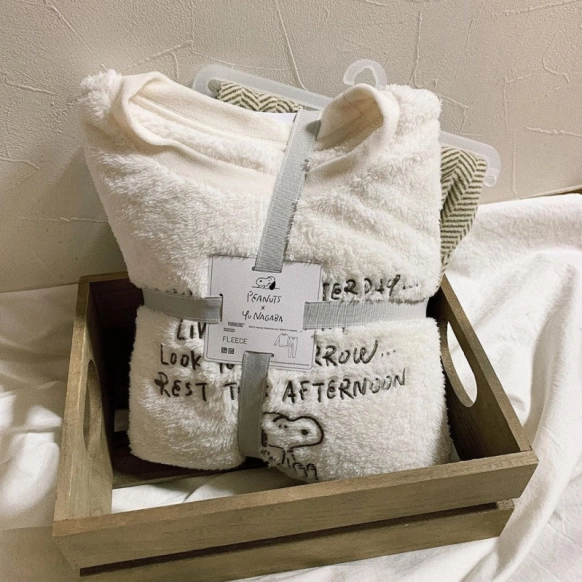 「ピーナッツ × 長場雄 フリースセット(長袖)」は、イラストレーターの長場雄さんが「PEANUTS(ピーナッツ)」の人気キャラクター「SNOOPY(スヌーピー)」を描いたルームウェアです。ルームウェアのほかにもスリッパも販売され、合わせて購入する方もいるそうですよ。