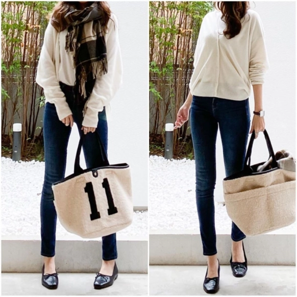 ・カシミヤの白カーディガンで上品カジュアルコーデ