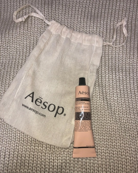 シンプルで洗練されたパッケージデザインが印象的な『Aesop(イソップ)』の「レスレクションハンドバーム」。布製のショッパーつきで高級感があり、プレゼントにもぴったりです。サラサラとしたテクスチャーと保湿力の高さに定評があり、女性のみならず男性のファンも多い人気アイテム。【詳しい情報はこちら】 イソップ公式HP