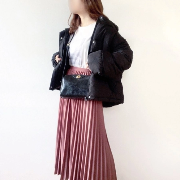 ピンク色のスカートは、ベーシックな色合いのものと比べて存在感が出るアイテム。ピンクスカートをおしゃれに着こなすには、主役となるスカートと相性の良い色味のものをトップスや小物に持ってくるのがベストです。ピンクと相性が良いのは、“トーン違いのピンク”や反対色とも言える色味の“黒”。ピンクスカートの色合いとマッチするものを合わせることで、スカートのピンク色だけが浮いて見えてしまう心配がなくなります。