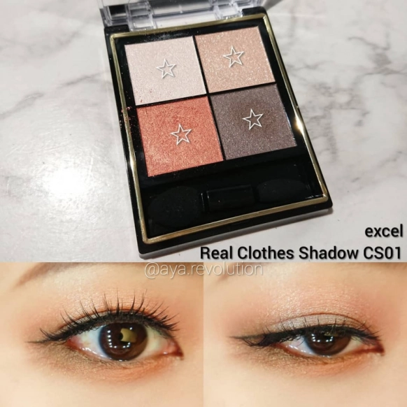 『exceL(エクセル)』の「リアルクローズシャドウ」は、デパコス並みの発色とツヤ感がSNSでも話題になっています。写真の「CS01 テラコッタブーティ」1,650円(税込)は鮮やかなオレンジブラウン系のパレット。しっかりとパールも配合されており、鮮やかな発色でツヤのある目元に仕上がります。
