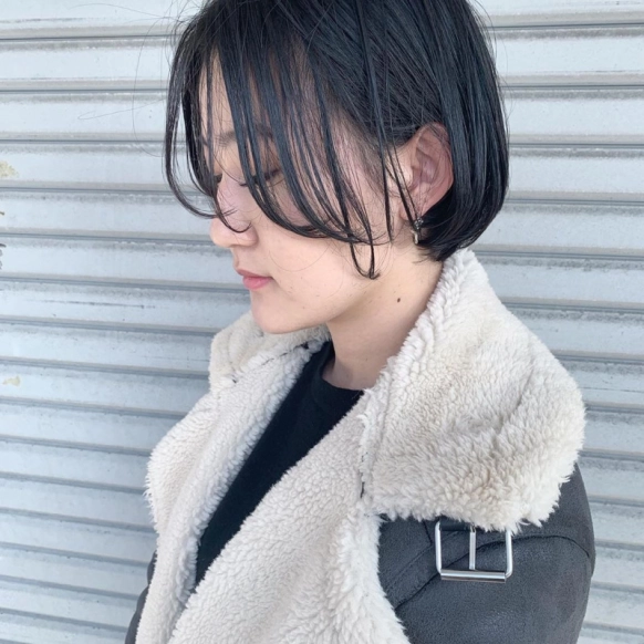 @ kumi_haircielさんは、長めのシースルーバングとショートボブを合わせています。前髪とボブのトップ部分の長さを合わせて、ハンサムスタイルの中にも女っぽさをプラス♡