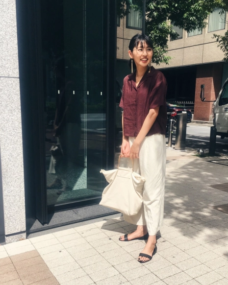 真っ白なワイドパンツはきちんと感もあり、オンオフ問わず使えるコーデアイテムです。特にレーヨン素材などのツヤ感のある素材なら、コーデもきれいめに仕上がるのでオフィスもOK!どんなカラーにも対応し、合わせるトップスのも困らないため、ひとつもっておくととても便利ですよ。