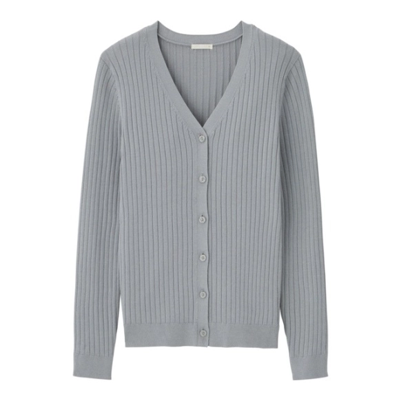 レディースの「ワイドリブVネックカーディガン」は、ストレッチの効くリブ仕様で体のラインにゆるやかにフィット。濃すぎず薄すぎず、合わせやすいグレーカラーはオンオフ問わず大活躍の予感。Vネックが首元をシャープに見せてくれ、適度な肌見せで大人のヘルシーコーデが叶います。GU各店舗、または公式オンラインストアにて、値下げ価格の590円(税抜)で購入できますよ。