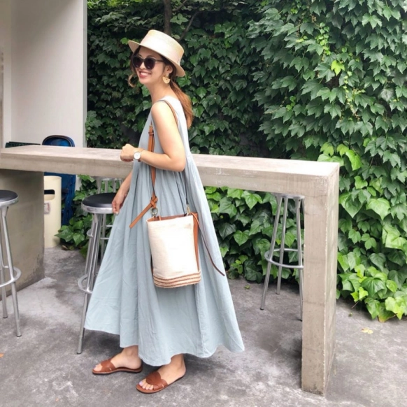 ツバが大き目のハットは、紫外線を防ぎたい大人女子にぴったりの夏帽子。ツバがあるぶんボリュームも増して見えるので、メインのコーデはスマートにまとめるほうがすっきりと見えます。最初から帽子を主役として、アクセやヘアアレンジは控えめに構成するとシックなムードに。遠目に見たとき帽子だけが浮いて見えることのないよう気をつけたいですよね。
