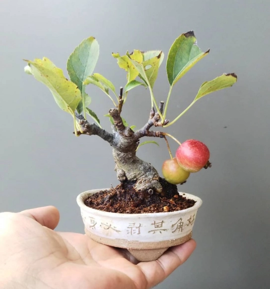 「実もの盆栽」は、名前の通り樹木に実をつける樹種です。常盤柿のほかにもリンゴやさくらんぼなど、お馴染みのフルーツがあります。実をつけるのは、盆栽にとって重労働。実が成るまでに苦労するため、初心者さんには難しく感じることもあるようです。