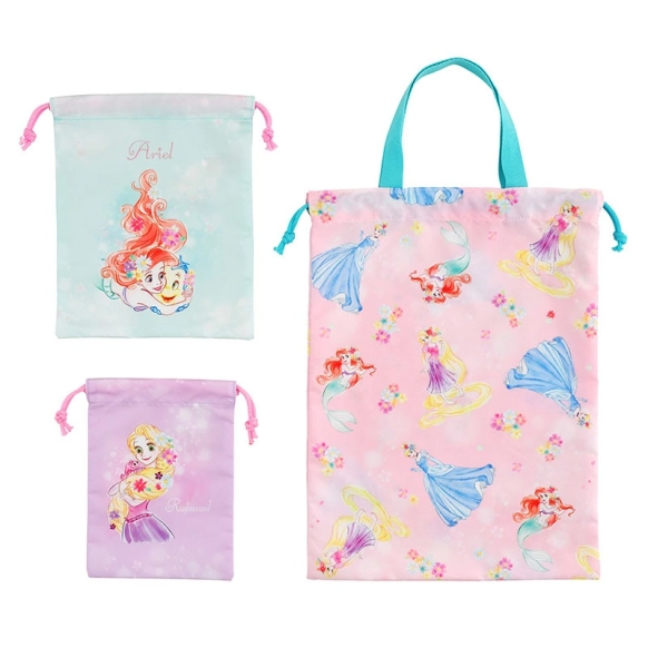 ・使い分けできる便利グッズ!プリンセスデザインの巾着セット