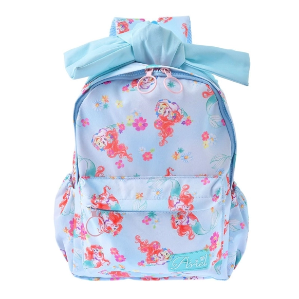 やわらかいタッチで描かれたアリエルとフランダーデザインのリュック。キャラクターの世界観を表す爽やかなブルーの色味、トップの大きなリボンなど、かわいいもの好きの子が喜ぶ要素が詰まっています♡荷物がたっぷり入るサイズ感、開閉しやすいリング型のファスナー引手、ポケットの多さ…と子どもの使いやすさを考えた仕様も魅力です。バックパック価格:3,900円(税抜)サイズ:高さ約36×幅24×奥行き10cm仕様:ダブルファスナー開閉タイプ/外ファスナーポケット×1、サイドポケット×2、内ポケット×1、ボトルホルダー×1対象年齢:3才以上