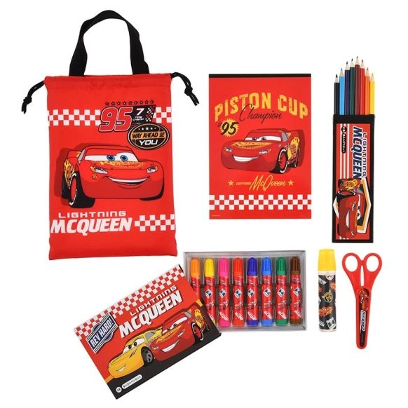 こちらのステーショナリーセットは、色えんぴつやメモ帳、はさみなど全6アイテムがセットになっています。ハサミのケースや水性ペンのボディなど、細かい部分にもカーズのデザインが♡持ち運びに便利なバッグは丈夫な布製です。お絵かき・工作グッズひとまとめにして通園できますよ。ステーショナリーセット 内容:バッグ、色えんぴつ(8色)、水性ペン(8色)、A5メモ帳、水のり、はさみ価格:1,900円(税抜)対象年齢:6才以上