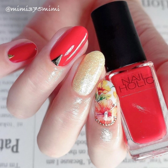 『NAIL HOLIC(ネイルホリック)』は、カラバリが豊富でその数はおよそ200種類!発色も良く、300円台というお手頃価格で購入できるのも魅力。思わずたくさん集めてしまうという方が続出しているようです。赤系カラーのラインナップも豊富で、鮮やかな発色が指先を華やかに彩ってくれますよ♡