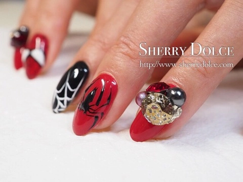 赤×黒のネイルはハロウィンネイルにもおすすめ!かっこ良さの中にも女性らしい色っぽさも感じさせるネイルに仕上がります。@sherrydolce_rikaさんのネイルは、テーマパークへのお出かけ用に仕上げたそうです。赤×黒ネイルで華やかでクールな印象に。大きめなビジューをプラスすることで、イベントに映える仕上がりになっていますね。