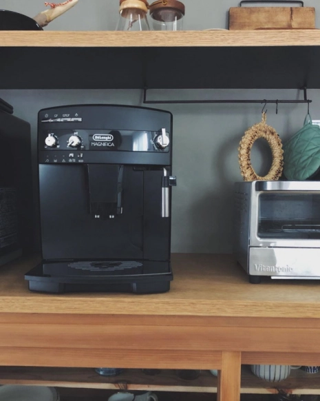 @a__s__homeさんが、愛用されているのは、『DeLonghi(デロンギ)』の全自動コーヒーメーカー「MAGNIFICA(マグニフィカ)」59,880円(税抜)。ボタンひとつで計量から洗浄までを行ってくれるパーフェクト全自動タイプ。ふわふわミルクを作れるミルクフロッサーもついているので、お店で飲むようなカフェラテやカプチーノを家で楽しむこともできますよ。