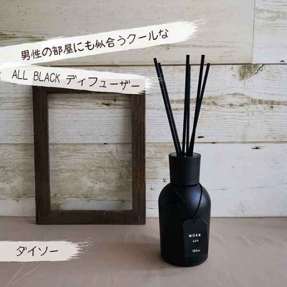 『DAISO(ダイソー)』の300円(税抜)商品である「ブラックディフューザー」。マットブラックの見た目と、ユニセックスなムスクの香りが、安いのにクールだと話題になっています。