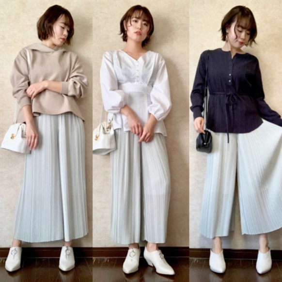 ユニクロのプリーツパンツの素敵な着こなしを見ていきましょう。