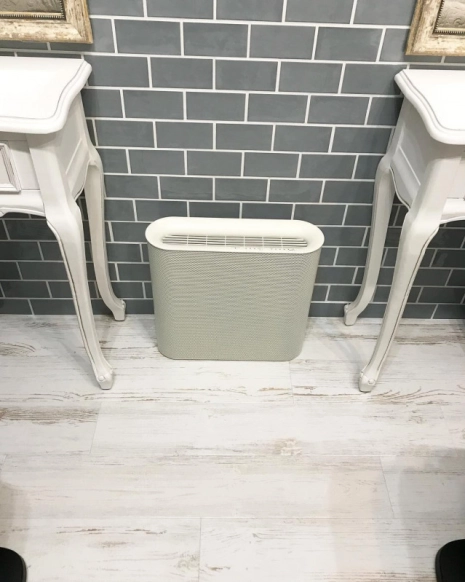 幅431mm、奥行き132mmとスマートでコンパクトながら、4層フィルターでしっかり匂いや花粉をキャッチ。デザインを損ねない最小限のスイッチは運転とタイマーのみ。