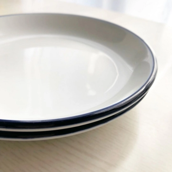 こちらの、清潔感のあるシンプルな白いプレートは、持っていると便利な定番食器「ブルーリム プレート」シリーズ。皿の縁の青いラインは、職人が手描きしたものだそう。純国産品なので、品質の良さもお墨つきですね。現在公式ページでは取り扱いがないようですが、「ZOZOTOWN(ゾゾタウン)」などのネット通販などでは取り扱いがあるようなので要チェックです。