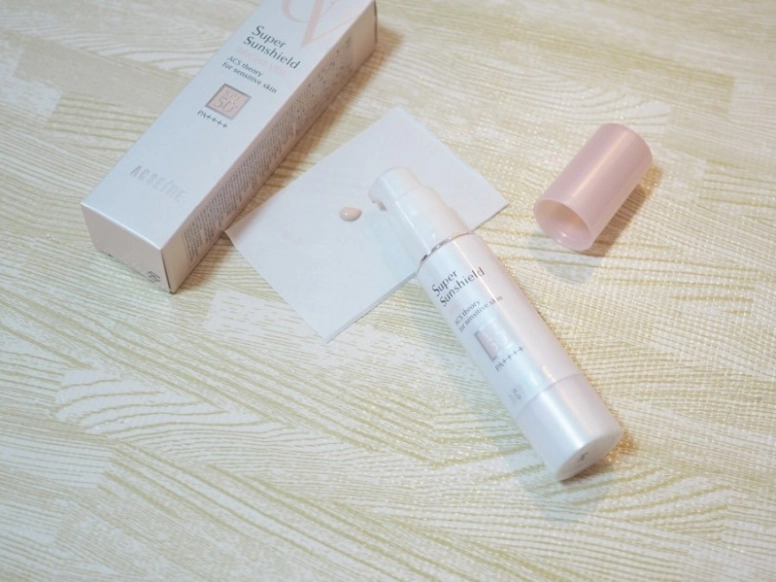 アクセーヌのUVベースは、皮脂や汗に強いウォータープルーフで作られているものが多いです。ウォータープルーフタイプは、肌へ負担をかけないためにクレンジングを使って落とすことをおすすめします。スーパーサンシールド ブライトフィットは、石鹸などの洗浄剤で落とせるそうですよ。
