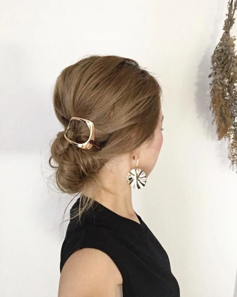 丸のフレームをモチーフとしたホールピンは、シンプルながらこなれた雰囲気を作ることができるので、オフィスヘアに最適◎。朝の時間がないときでも、ピンを通してとめるだけなので、一瞬で髪型が決まるでしょう。