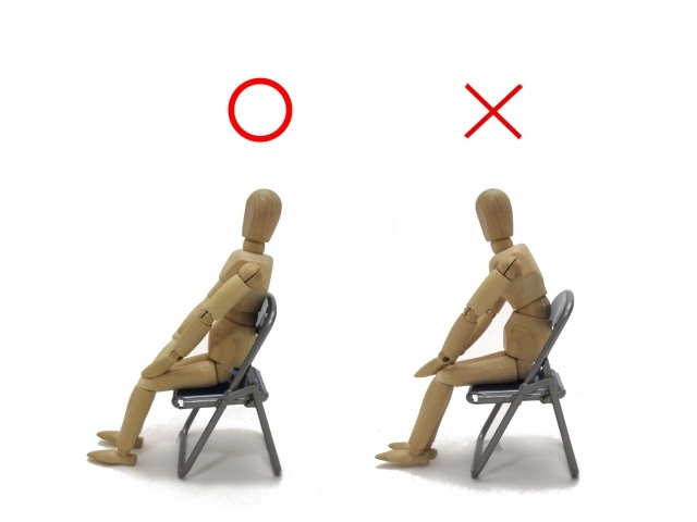 姿勢矯正クッションの使い方は、基本的に椅子やソファに置いてその上に座るだけです。椅子に座るときは、骨盤を立てるイメージで奥まで深く座ることを心がけて。良い姿勢とは、耳、肩、太もものつけ根が一直線上にあることがポイント。自分の姿勢を鏡を使って横からチェックしてみるといいでしょう。