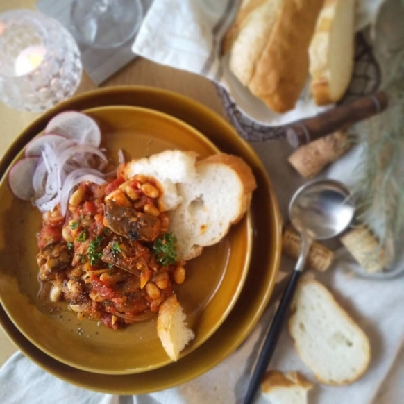 @no10no02さんのサバ缶アレンジは、トマト煮込みです。玉ねぎ以外は、オール缶詰のレシピなのだそう!サバの水煮缶・大豆の水煮缶・トマト缶にコンソメや塩などで味つけした煮込みは、おしゃれでとてもおいしそう。缶詰さえストックしてあれば、こんな素敵なひと品ができてしまうなんて…さっそくまねしてみたくなりますね♡