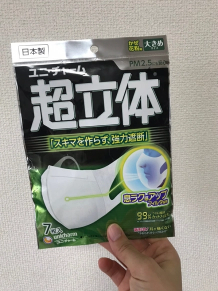 『ユニ・チャーム』の「超立体マスク」は全面フィット形状で、顔とマスクの間に隙間をつくりません。ゴム紐は幅の広いストレッチ素材を採用しており、しっかりと耳にフィットする上、長時間の使用もらくちんです。