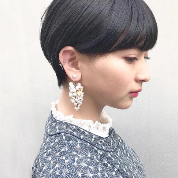 流行中のベリーショートは、メンズっぽい印象が強く出てしまいますが、ベージュでカラーリングすることで、ガーリーさも出せますよ。