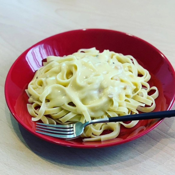 ・平打ちタイプのスパゲッティはクリームとの相性バツグン