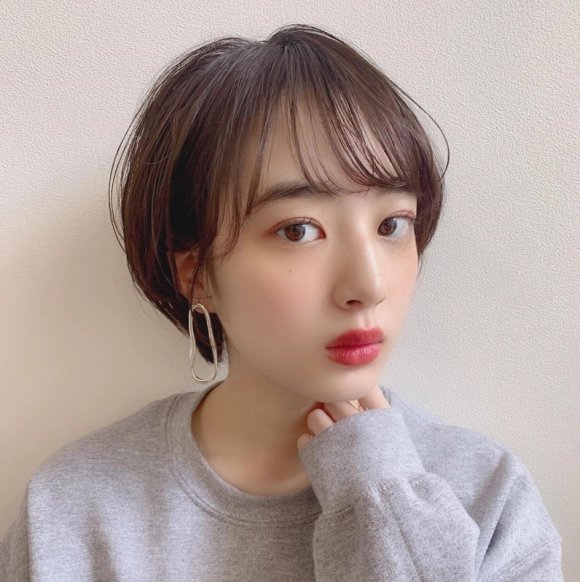 愛らしさ満点のショートボブと、シースルーバングの組み合わせは丸顔さんにも大人気のヘアスタイル。前髪の隙間にできる縦ラインによって、顔の縦横比を黄金バランスに近づけてくれますよ☆