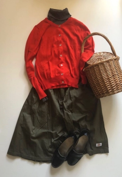 赤カーディガンは、シンプルなコーデにこそ合わせやすいアイテム。一見、赤は合わせにくく感じるかもしれませんが、意外に使いやすいカラーです。大人女子コーデのさし色にぜひ、取り入れてみてくださいね。