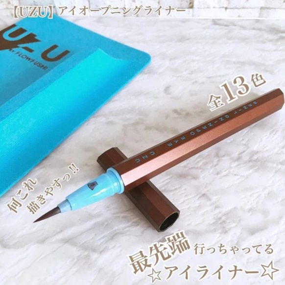 『UZU(ウズ)』の「EYE OPENING LINER(アイオープニングライナー)」1,650円(税込)は、上質な筆毛を採用しているので、テクニックがなくても納得の仕上がりに導けます。ウズのブラウンアイライナーは、発色の良さが特徴。一度塗りでナチュラルなメイクができ、二度塗りするとハッキリとした濃いメイクができるという口コミもあります。