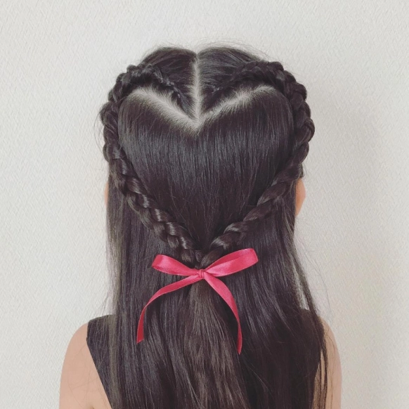 ・【ハートヘア】友だちにほめてもらえそう☆リボンはかわいい色を使って